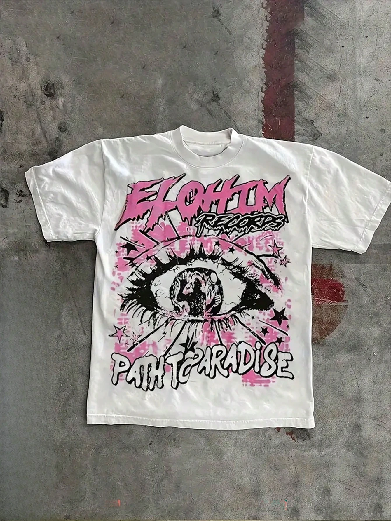 Men’s Round Neck Short Sleeved Casual Pure Cotton Print Y2K Style Hand Drawn Unisex Cotton Graphic T Shirts