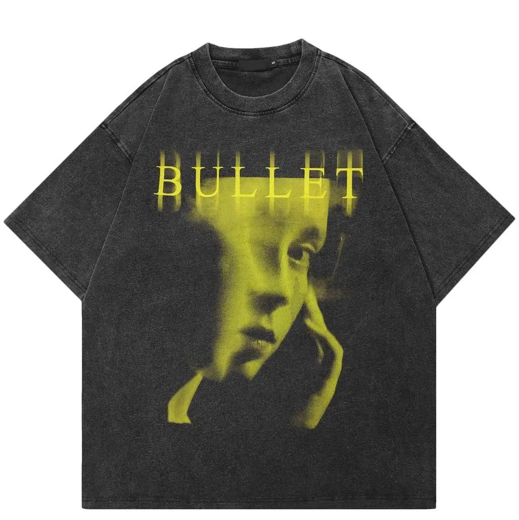 230g Heavy Men Women Washed Vintage Customized Print Oversized T-Shirts Street Hip Hop Punk Harajuku Casual 100%Cotton Short