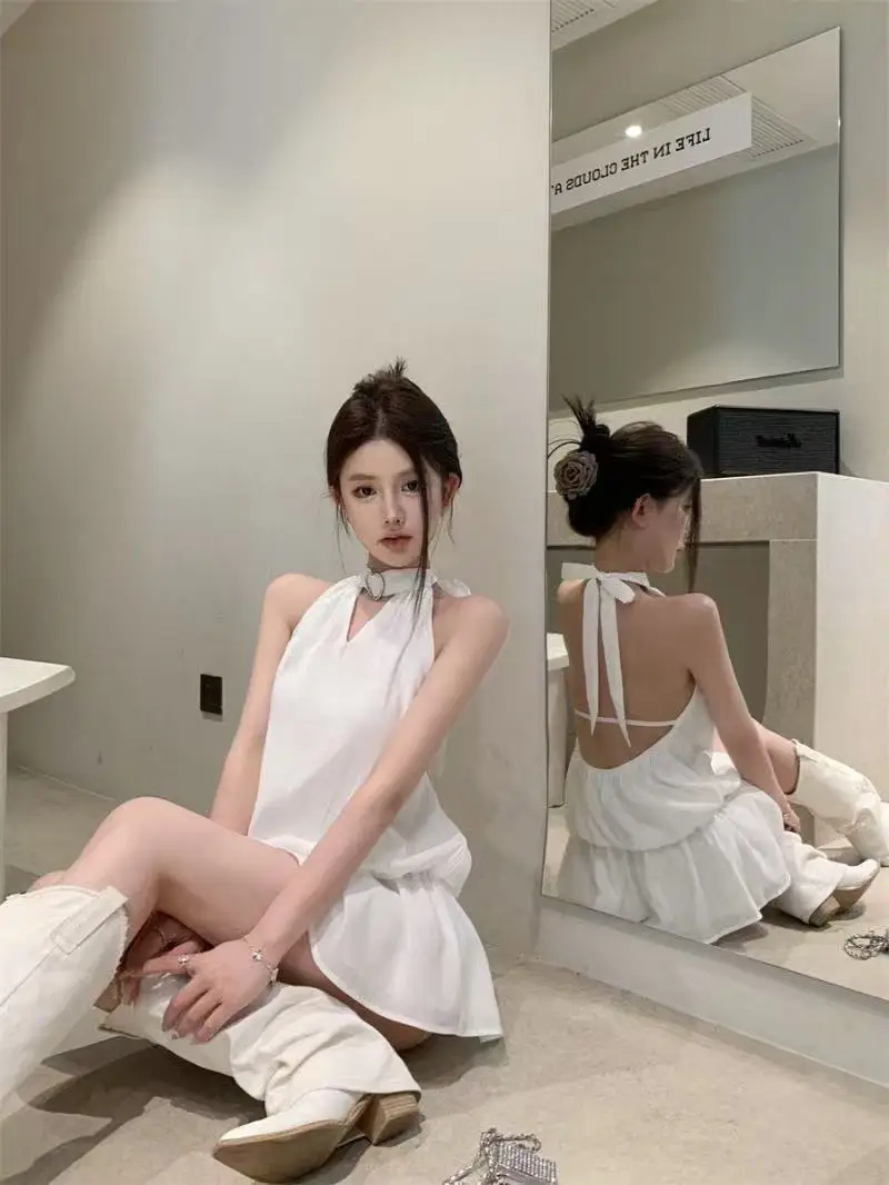 Y2K’s new solid-color halter-neck backless dress is a sexy, elegant and slimming short skirt for women in summer