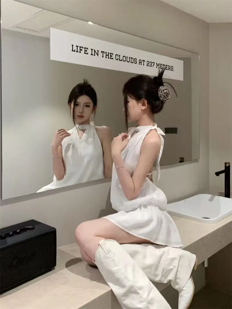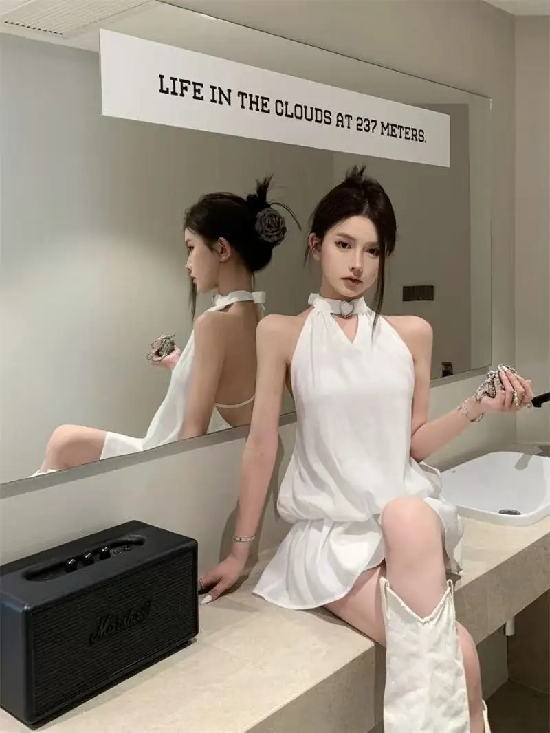 2024 Europe and the United States explosive new cross-border dress summer senior sense Y2K sexy halter Spice Girl dress